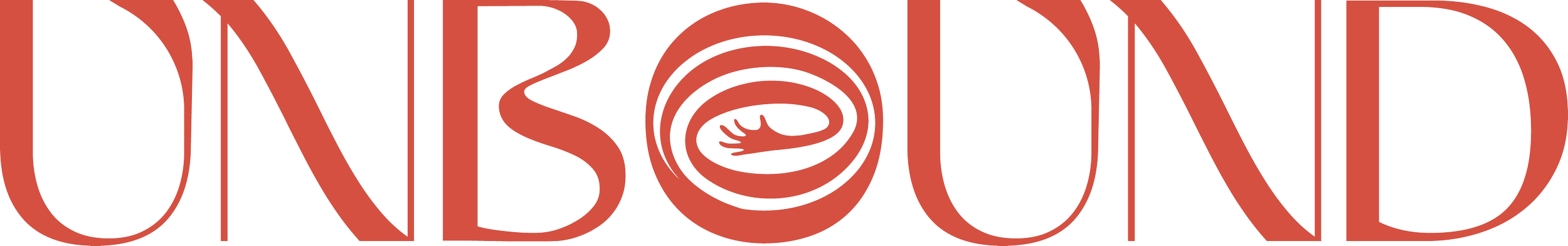 The word "UNBOUND" in stylized red font with a spiral design inside the letter "O".